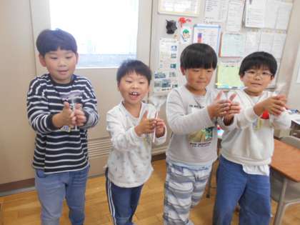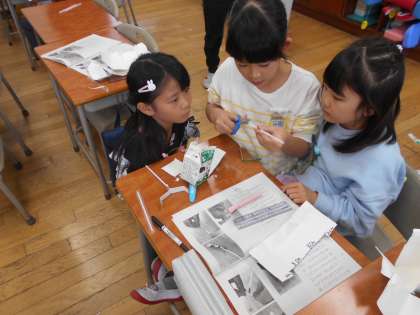 国語科では、おもちゃの説明書を読む学習をしています。今日は、説明書を読み、ストロートンボを作りました。作りながら、分かりやすい説明書の特徴を見付けました。