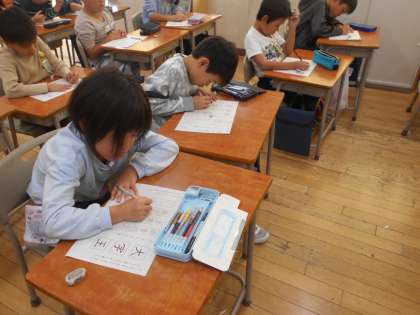 書写の学習では、点の方向に注目して文字を書きました。子供たちは、毎時間集中して、整った文字が書けるように練習をしています。