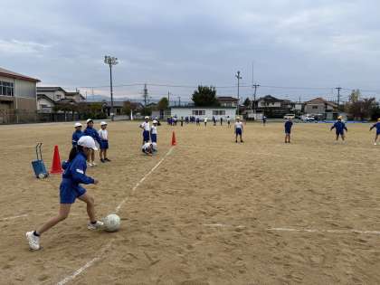 体育ではキックベースボールをしています。色団で作戦を立てて、協力してプレーする姿が見られました。授業の最後には「隙間を狙って蹴るといいよ」等友達に助言していて、これからの試合がさらに楽しみです。