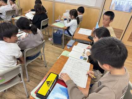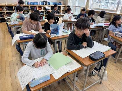 国語では「すがたをかえる大豆」という説明文を読んでいます。友達と音読しながら各段落に書いてある大切なことを抜き出しました。「ここに書いてあるよ」と声をかけ合いながら読み進める姿が見られました。