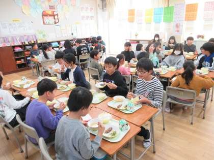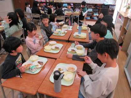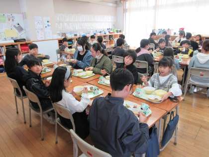 6年生との交流給食がありました。普段じっくり話す機会があまりない6年生と一緒に給食を食べることで、交友の輪を広げることができました。