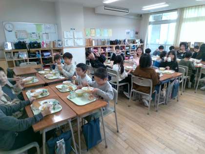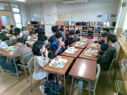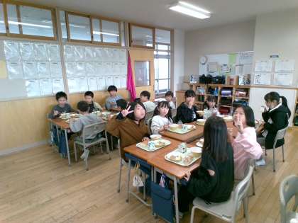 1年生といっしょに給食を食べました。いろいろな話をして楽しい時間を過ごせました。