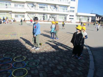 運動委員会企画の「藤っ子スポーツまつり」に参加しました。サブコートでは、ボウリング等のゲームに参加しました。順番を守り、友達と競い合いながら楽しみました。