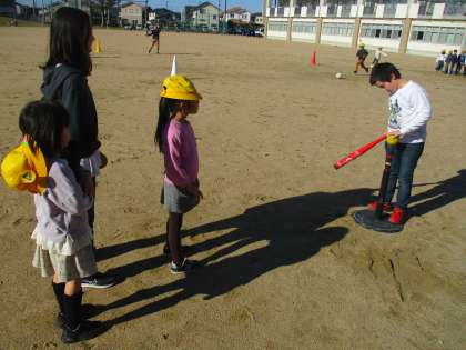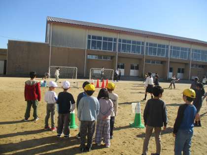 グラウンドでは、シューティングゲームやティーボールのゲームに参加しました。他学年の様子を見て遊び方を学んだり、運動委員会の説明をしっかりと聞いて活動したりしていました。