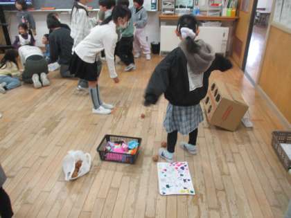 今日は、9月に素敵な「なかよしまつり」を開催してくれた6年生の子供たちを招待して、子供たち主催のイベントを開きました。輪投げや玉入れ等のゲームを楽しんでもらったり、景品を渡したりして、感謝の気持ちを伝えました。