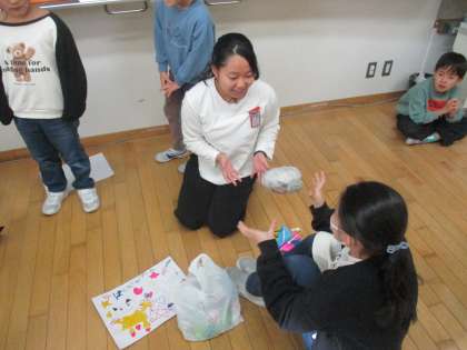 爆弾ゲーム、釣りゲーム等の様子です。6年生と一緒にゲームを楽しんだり、景品を嬉しそうに渡したりしました。子供たち自身で企画、運営を行ったのでとても満足していました。