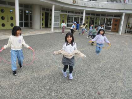 「たくさん跳べるようになりたい」「もっと上手に跳びたい」などの願いをもって、なわとびに挑戦する子供たちが増えてきました。友達と仲良く遊んだり、12月に開催される「なわとびチャンピオン大会」に向けて、一生懸命練習に取り組んだりしています。