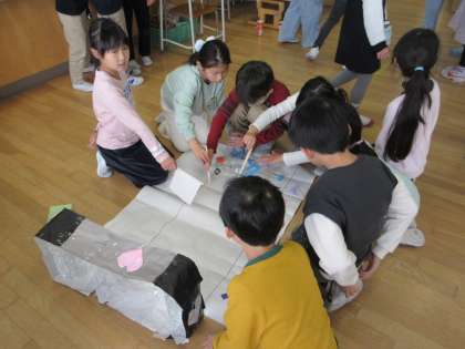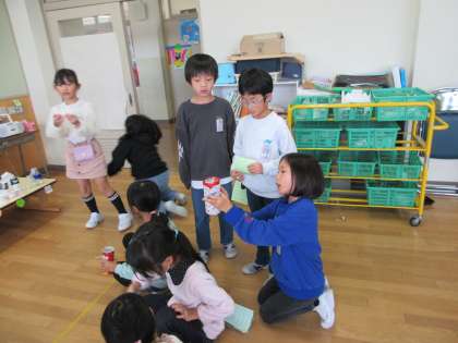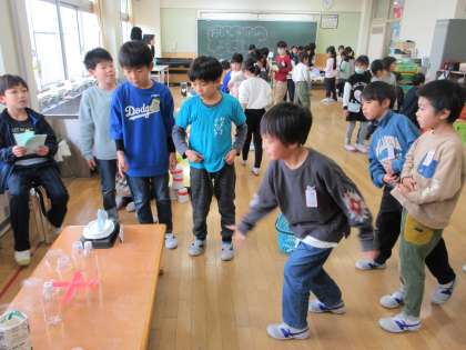 生活科の学習で動くおもちゃを作り、1年生を招待しました。1年生に遊び方を分かりやすく教えてあげたり、うまくできると拍手をしてあげたりするなど、1年生と楽しい時間を過ごすことができました。