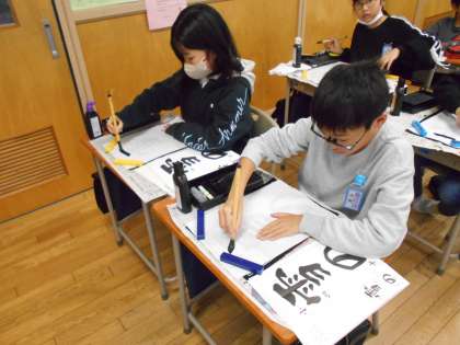 3学期始業式に行われる書き初め大会に向けて練習を始めました。字のポイントを意識しながら、丁寧に書き進めていました。