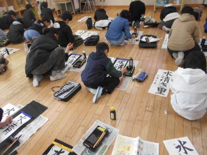 書き初め大会に向けての練習が始まりました。お手本をよく見て一画一画を丁寧に書いています。