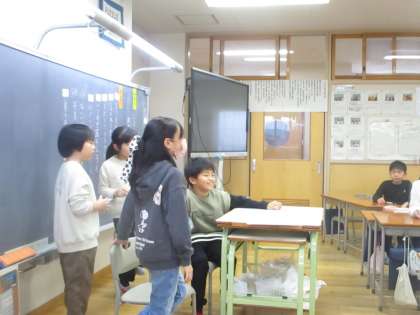 学級活動では、クラス会議を行いました。2学期も終わりに近づき、みんなでお楽しみ会をするための話合いをしました。みんなが楽しむことができるように、学級代表を中心に一生懸命考えていました。