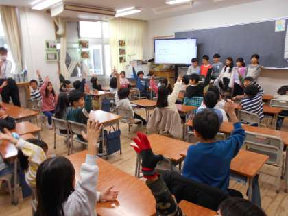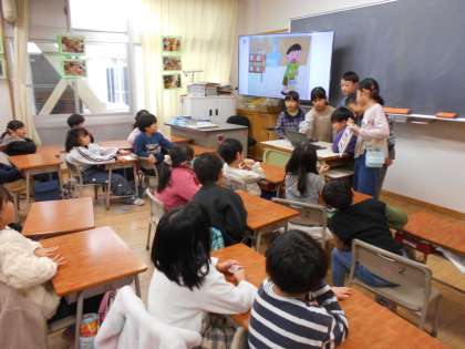 国語の時間に「おすすめの1さつを決めよう」という学習をしました。班で話し合って決めたおすすめの1冊を紹介するために、1年生さんの教室にお邪魔してきました。子供たちは緊張しながらも、1年生のみんなにしっかり伝えようと一生懸命発表していました。