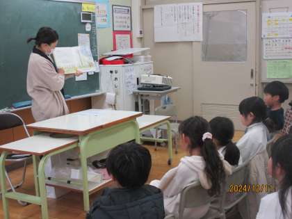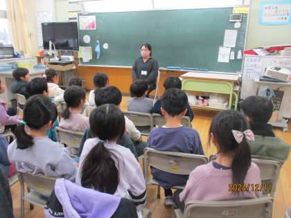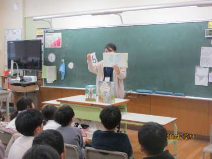 2日間にわたって市立図書館の司書の方々からストリーテーリングとブックトークをしていただきました。子供たちは、前のめりになりながら本の世界に入り込んでいました。紹介していただいた本は、しばらく教室に置いておけることになりました。「続きを読んでみたい」「ゆっくり絵を見たい」と子供たちは嬉しそうでした。
