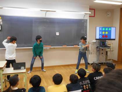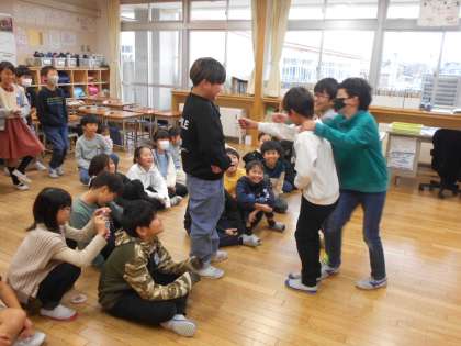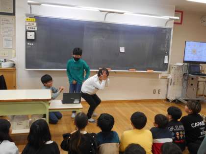 今日は、お笑い係が漫才を披露しました。大谷選手の野球ネタや藤ノ木小学校の運動会ネタなど、全て面白く、見ている子供たちも笑いが止まらない様子でした。