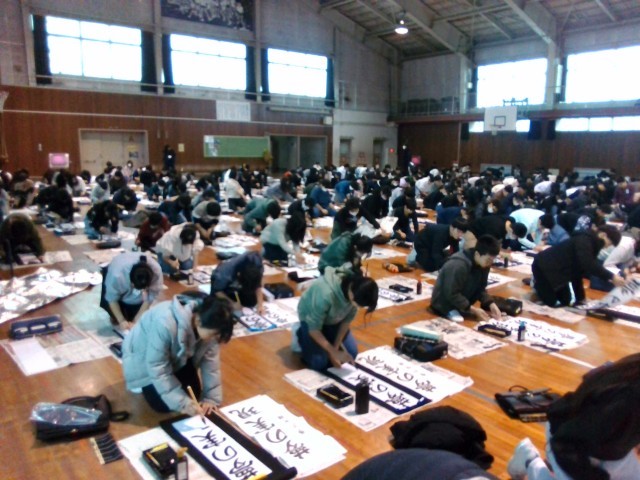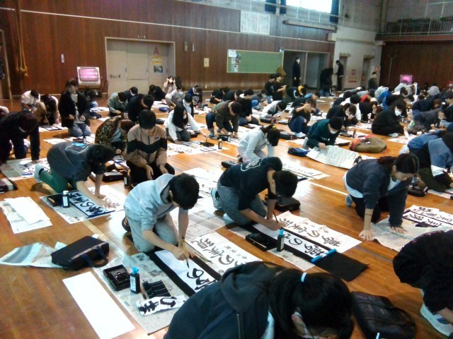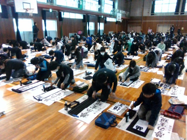 校内書初め大会では、冬休み中に練習したことを意識して、一画一画丁寧に書きました。