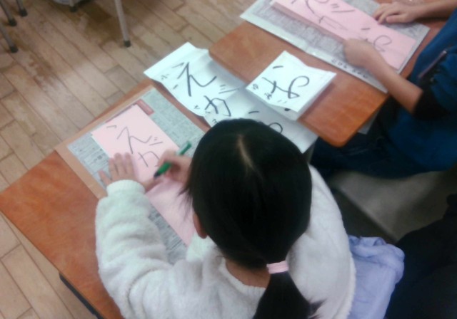 書初め大会の本番でした。「えがお」で1年間過ごすことができるように、今までの練習を生かして一文字ずつ丁寧に書いていました。