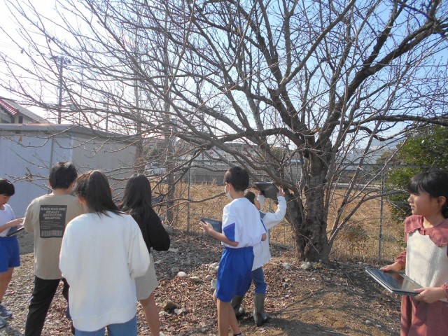 今日は、冬になると植物や動物の様子はどのように変わるのかを調べるために、桜やヘチマの観察に行きました。「新しい芽があるよ」「種ができている」と、変化に驚く子供たちでした。