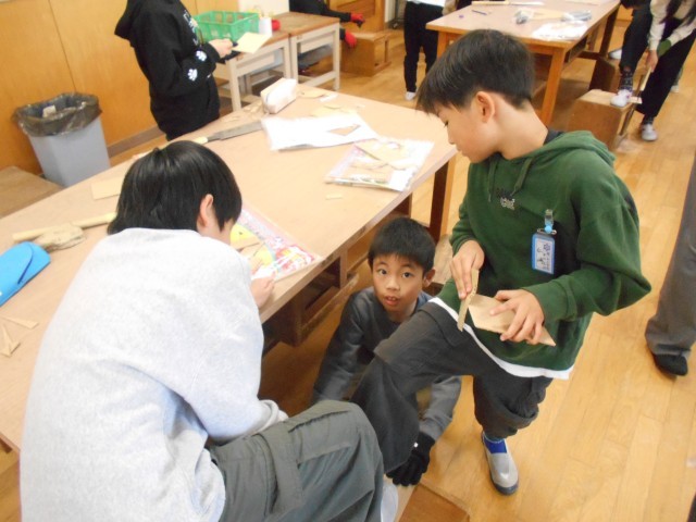 図画工作科の学習では、のこぎりを使う制作活動に取り組んでいます。初めてのこぎりを使うという子がほとんどでしたが、先生やボランティアの方々に助けてもらいながら、けがもなく安全に活動を進めていました。今週もご協力いただいた保護者の皆様、ありがとうございました。