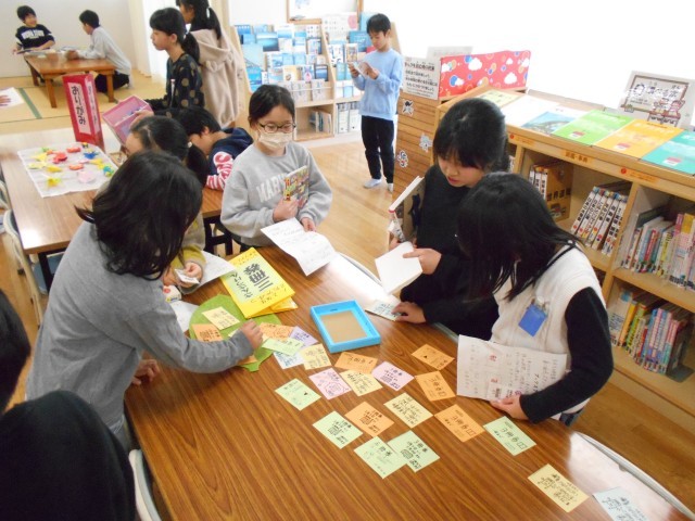 今週は、図書委員会の企画で「ブックスタンプラリー」が行われています。休み時間に図書室を利用し、本を借りるとスタンプがもらえ、スタンプがたまると景品がもらえるという楽しい企画です。図書室を利用する4年生がいつにもまして多かったように思います。
