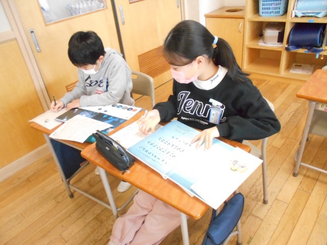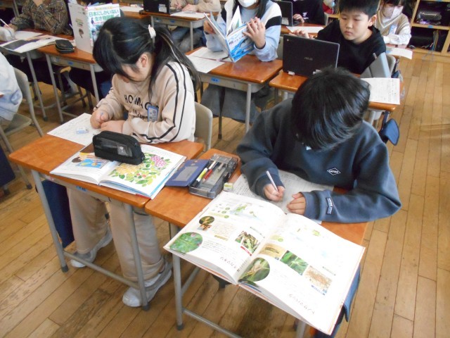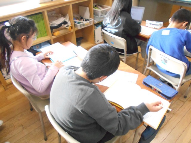 国語科の学習では、お気に入りの本を選び、その本の紹介文を書いています。内容を簡単にまとめ、作者が伝えたい思いも汲み取りながら紹介文を書き進めています。