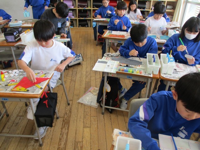 のこぎりを使って切り分けたパーツに色をぬって、組み合わせていく作業に入りました。思い描く形になるまで、あと少しです!