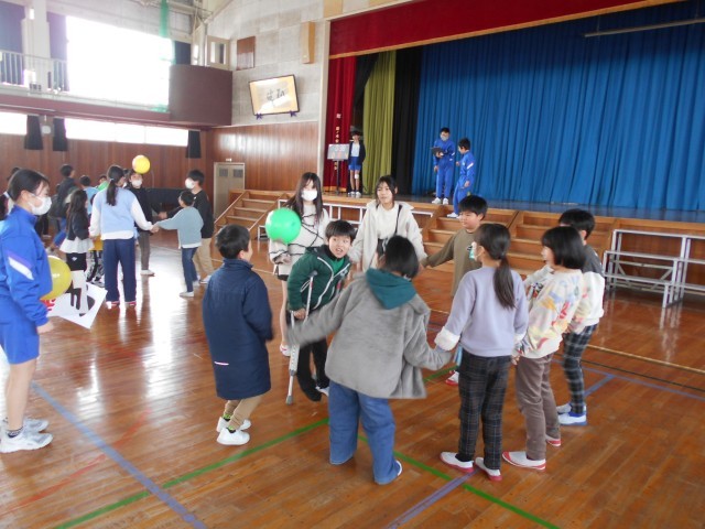 6年生が企画した「風船リフティング」に参加しました。風船を落とさないよう、みんなで協力することを楽しんでいました。