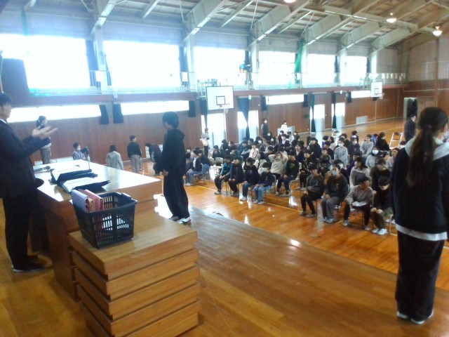 卒業式の練習を始めました。18日(火)の卒業式に向けて、みんな真剣に練習に取り組んでいます。