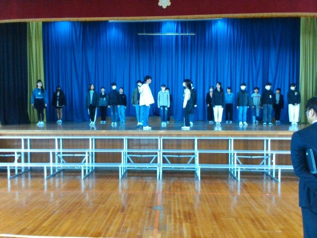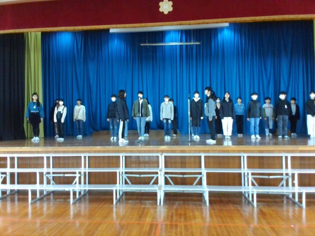 児童会引き継ぎ式に向けて練習を行いました。6年生は、今の5年生にバトンを受け渡していきます。