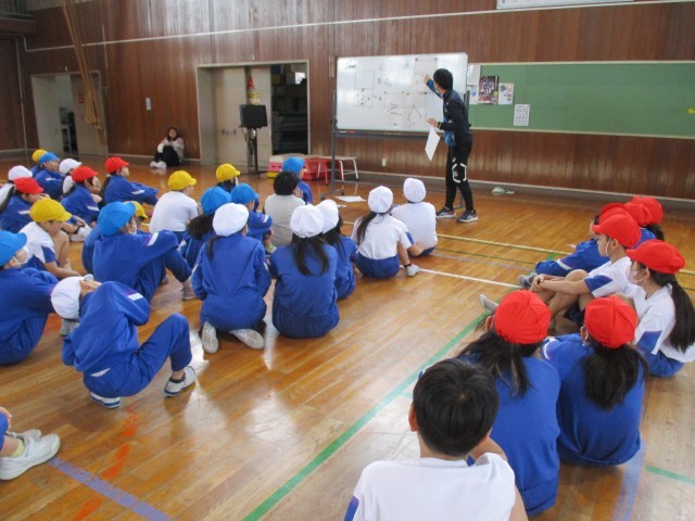 残り少なくなってきたポートボールの学習です。守りの人数と攻めの人数に差をつけ、どのようにパスを回すか作戦を立てました。それぞれの団で真剣に話合いました。
