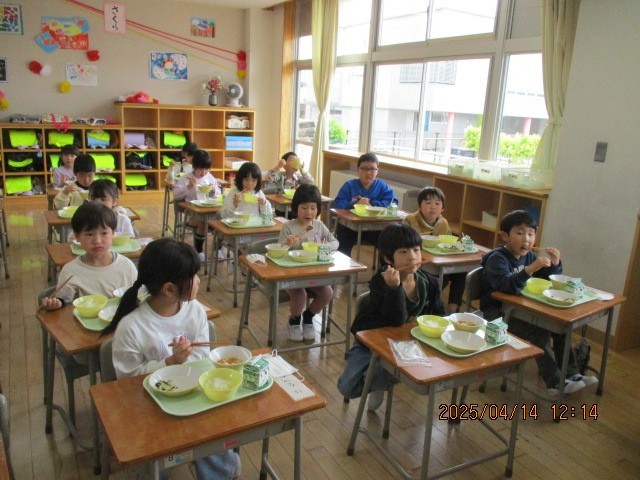 ピカピカの1年生、給食も始まりました。準備の流れや給食当番の仕事を少しずつ覚え、だんだんと早くいただきますができるようになってきています。担任一同、今後の子供たちの成長がますます楽しみです。
