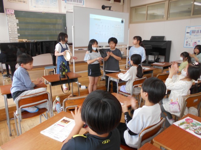 音楽ではリズム遊びをしました。友達のリズムを真似して楽しみました。