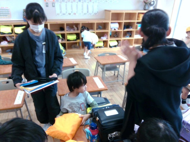 1年生と朝の交流が始まっています。