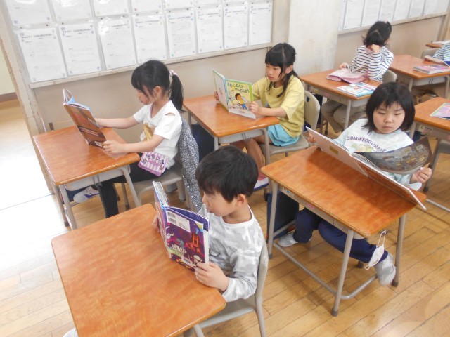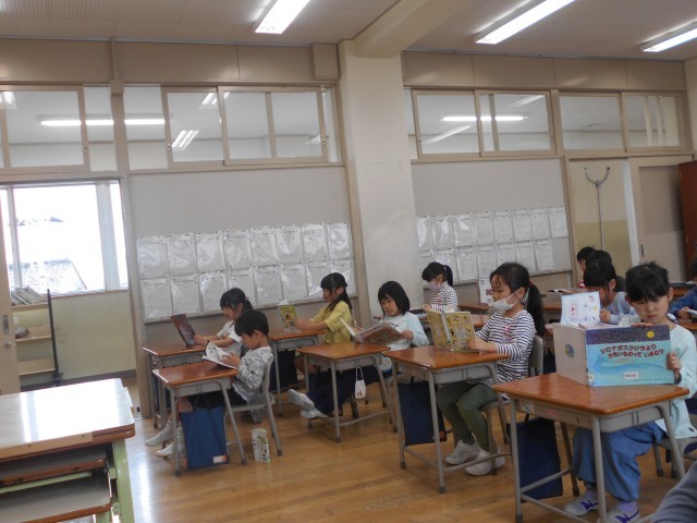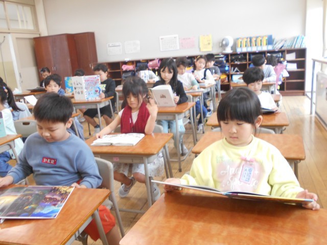 読書の時間では図書室で借りた本や学級文庫の本を読んでいます。2年生になり、文字の多い本に挑戦したり、今まで読んだことのないジャンルの本に興味をもったりする子供たちの姿が見られました。