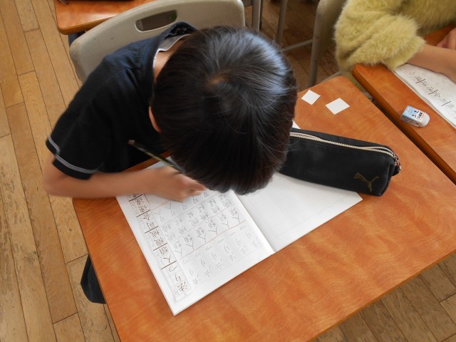 国語科では漢字の練習もしています。子供たちは覚えようと一生懸命に努力していました。