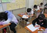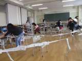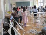 「つないでつるして」の学習では、新聞紙やチラシを長くつなげて、くもの巣のような...