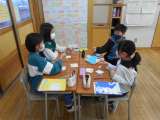 4人グループで陣取りゲームをしました。じゃんけんをして、勝った子供がどんどん色...