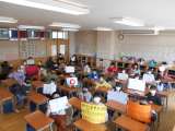 5年生は卒業式に向けて準備をしました。子供たちは式場に椅子を並べたり、6年生教...