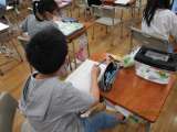 図画工作科では、筆を使わずブラシやビー玉等の道具を使って絵の具で作品をつくって...