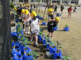 運動会の当日の朝も、子供たちは自分の野菜に水やりをしていました。とてもよい天気...