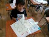 はさみの使い方について学習し、切る練習しました。曲線や円は紙を動かしながら切る...