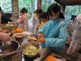 2日目は野外炊飯で焼きそばを作りました。食材を準備するチームと、かまどを準備す...