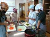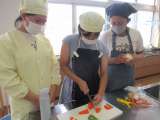 朝食に合うおかずの一例として「いろどりいため」の調理自習を行いました。 大き...