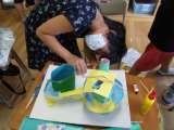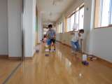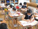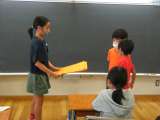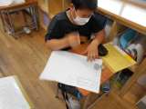休み時間を楽しく過ごせるように、ぬり絵や紙鉄砲をプレゼントしてくれた5・6年生...