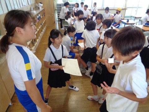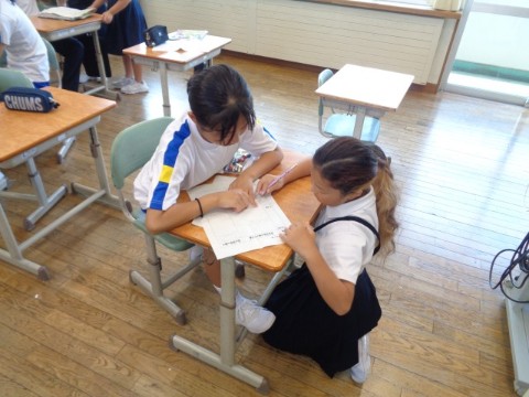 今週水曜日のファミリー活動は、3年生が企画・進行を担当します。今日は、先週から話し合ってきた計画をよりよくするために、6年生にアドバイスをもらいに行きました。