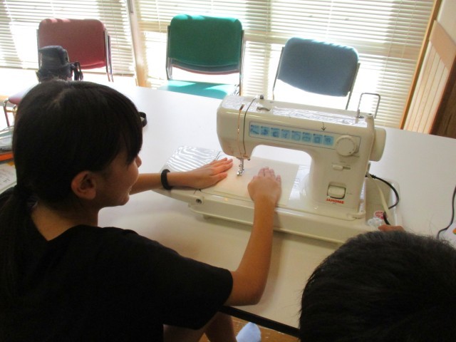 空縫いで布を前に送る練習や、糸をかける練習に楽しく取り組んでいます。