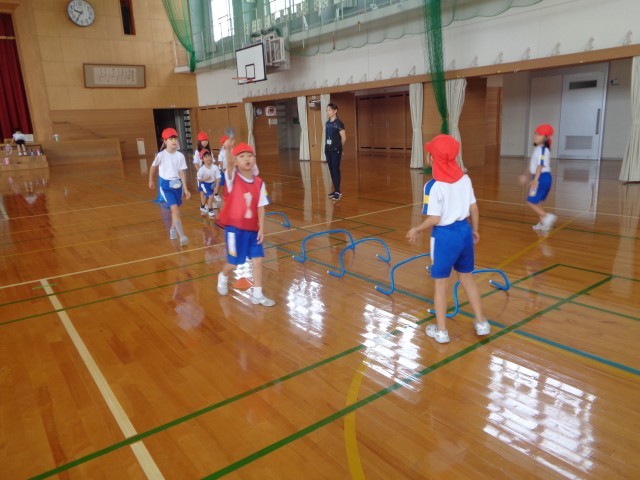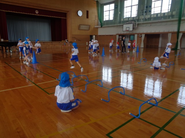 チームのみんなとハードルの位置を相談して決め、リズムよく跳び越えました。