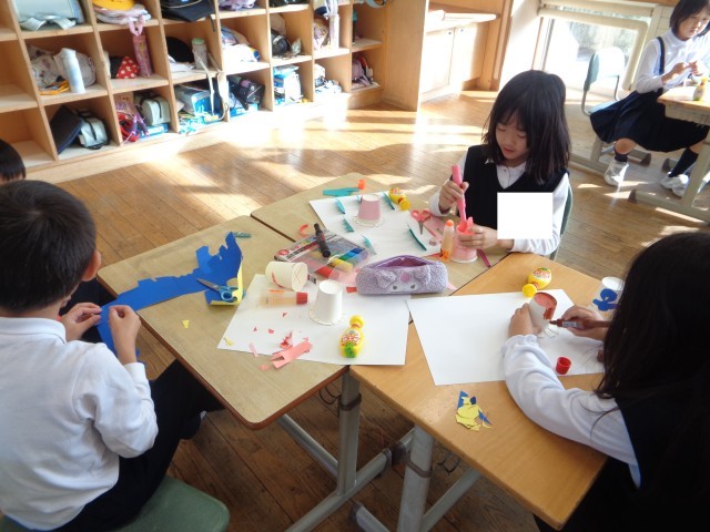 図画工作科「とびだせ ぴょーん」の学習の様子です。