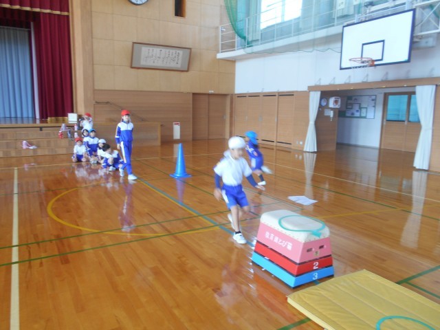 体育では跳び箱の学習が始まりました。手の付き方や着地の仕方に気を付けながら取り組みました。