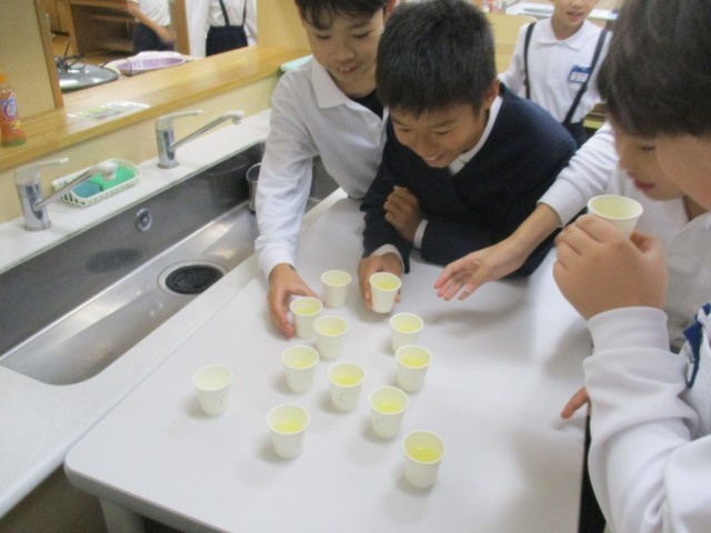 かつおぶし、昆布、煮干しの出汁にみそをといたものと、お湯にみそをといたものを飲み比べしてみました。