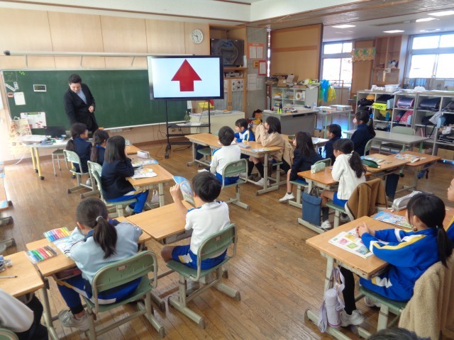 今日は、様々な図形を表す英単語を学習しました。図形を組み合わせてつくったキャラクターを当てるクイズゲームを通して、英語表現に親しんでいました。